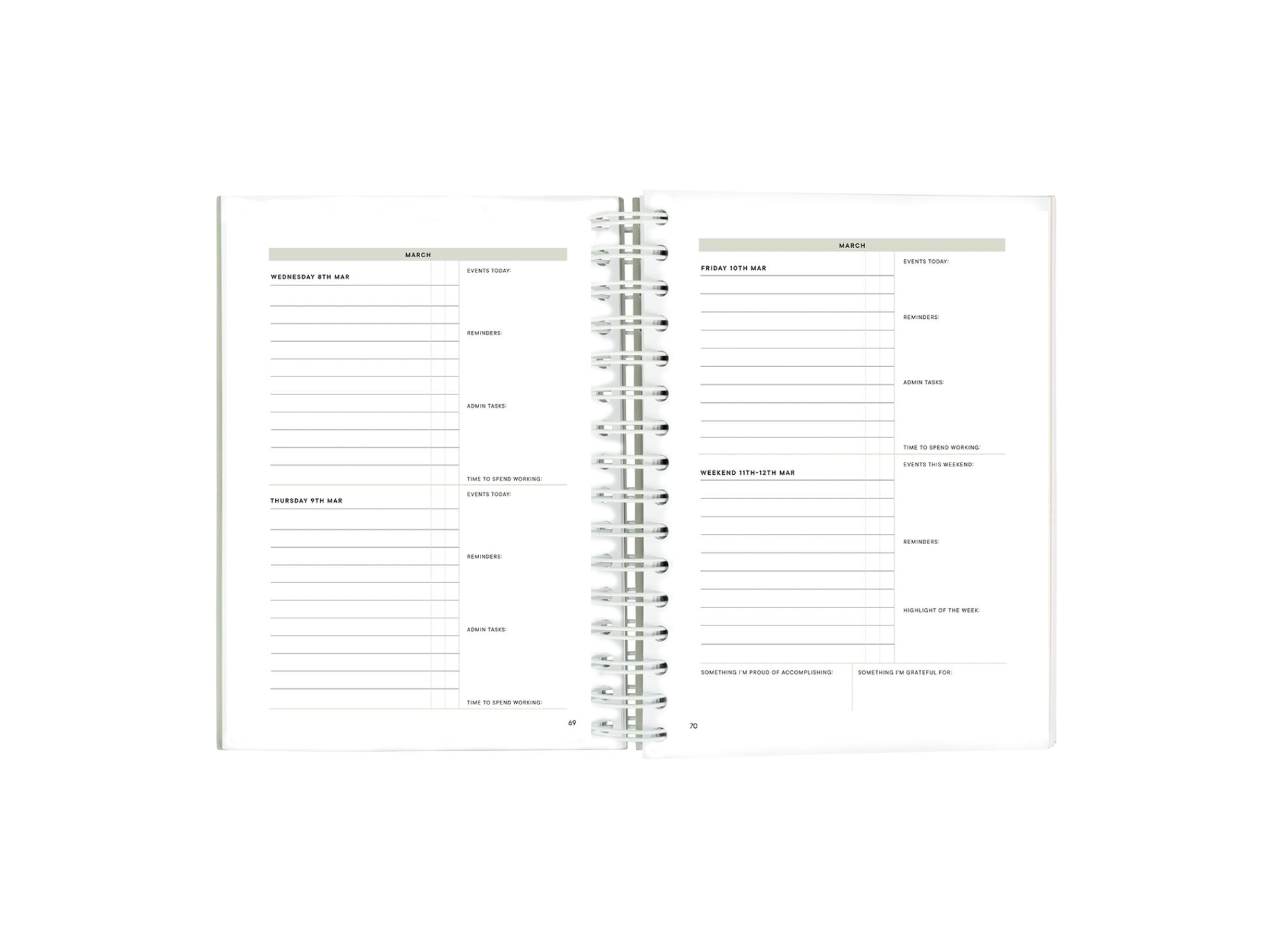 Unlike most diaries, this planner includes space to track all of your daily tasks, reminders and due dates (conveniently separated on the page so it’s easier to see everything at a glance!). The planner also provides weekly reflective prompts to encourage you to pause and acknowledge your accomplishments.
