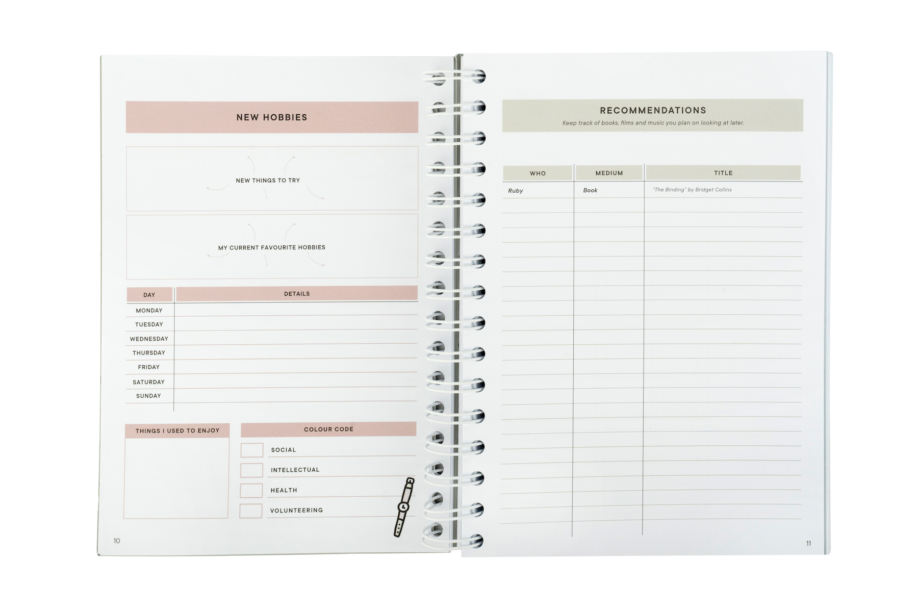 There is space to track goals, meal ideas, expenses, library books, recommendations, gift ideas, addresses, New Year’s resolutions and more. Everything you need to keep yourself organised in 2026.